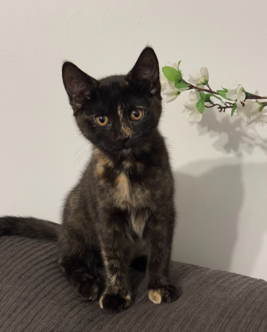 Charob is a precious ball of fluff and affection, ready to steal your heart with her sweet disposition. This delightful kitty is not only adorable but possesses a playful spirit that can turn any moment into an adventure. Charob loves pats, playtime, and is quick to remind you by gently grabbing your hand with her paws if she thinks the game is slowing down. Her favourite toys are simple delightsâa rolled ball of paper or a stray piece of material becomes her treasure as she enthusiastically tosses it around and carries it around to show off.