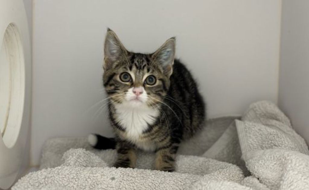A sweet and playful female kitten looking for her forever home! Paris loves to explore, chase toys, and cuddle up for naps. She's friendly, social, and would make a great companion for anyone looking for a fun little furball to brighten their day.