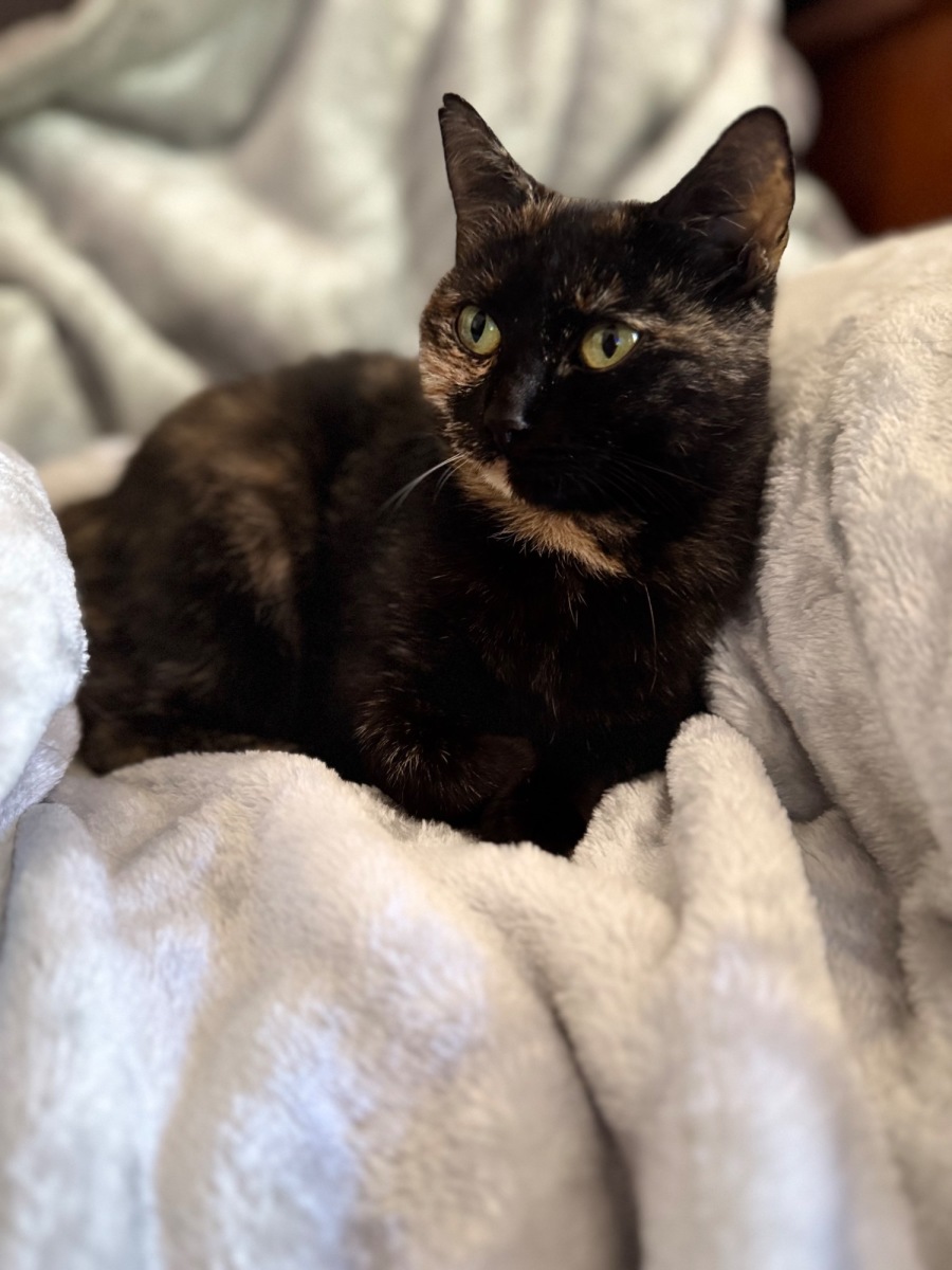 While Saffy can initially be a little shy when meeting new people, her warm heart quickly reveals itself with a little attention. She may allow an affectionate scoop into your arms, but only for brief moments before she'll settle herself beside you or on your lap with insistent nudges, seeking your attention.