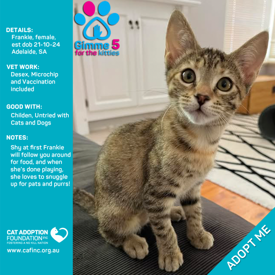 To adopt this kitty please contact Sayla on 0422 652 837 or email us at info@cafinc.org.au.