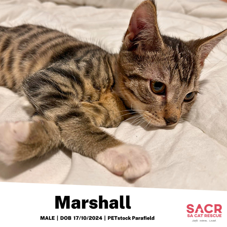 Meet Marshall, your future feline friend who's truly the epitome of a "smooshy boy" with a heart full of love to give. Marshall is an absolute love bug, with a friendly and playful disposition that will charm everyone he meets. With a confident stride and a personality as warm as sunshine, he's the perfect companion for any cat lover looking for a loyal friend.