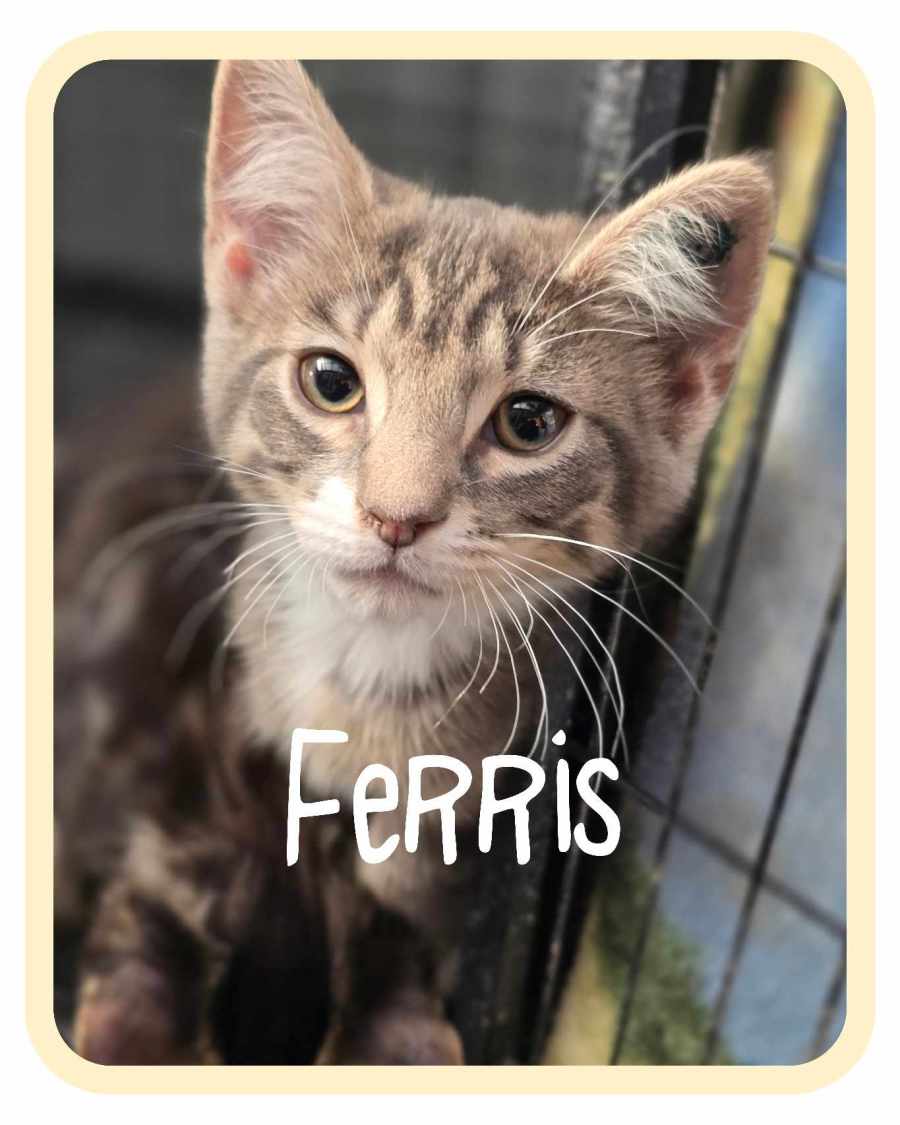 Ferris is a delightful kitten with a friendly demeanor and a penchant for cuddles. This little bundle of joy is sure to win your heart with his affectionate nature and playful antics. Ferris thrives on human interaction and is always ready to snuggle up on your lap, making him the perfect companion for those looking for a feline friend to share cozy moments.