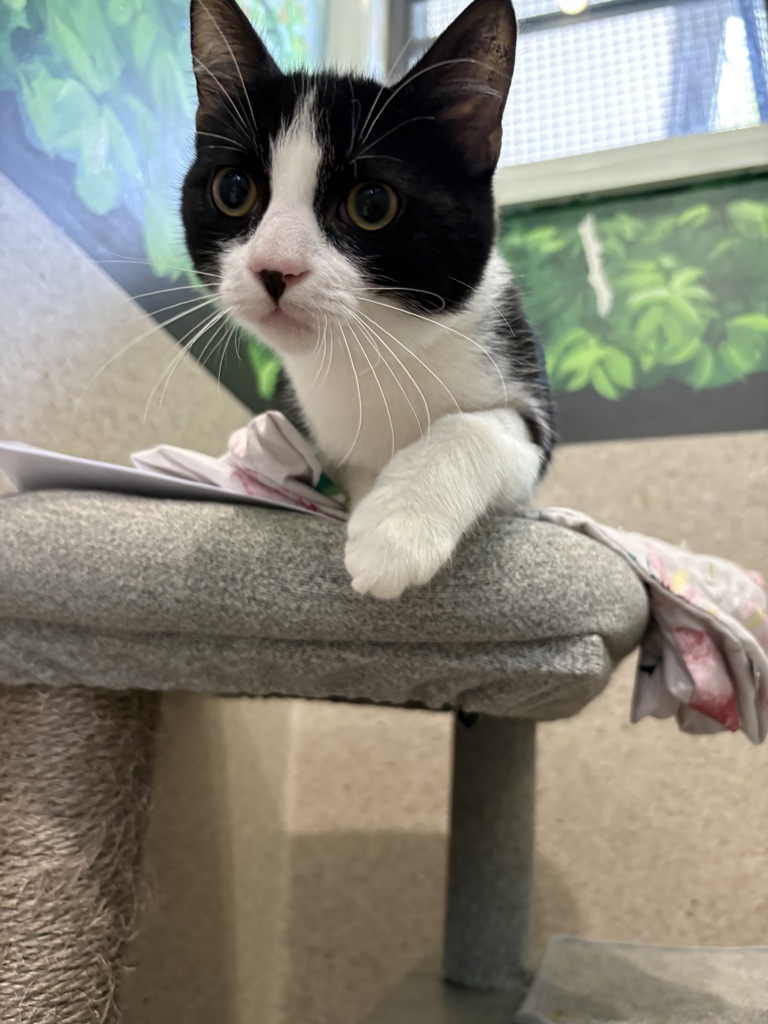 Rumi is a sweet and playful young boy with a bit of a shy side. While he might take some time to warm up to new people and environments, once he feels comfortable, he'll quickly become your best friend. His playful nature makes him a joy to watch, and he's always ready for a fun game or a cozy cuddle. He's got a little bit of a mystery to him at first, but once he's settled in, his true affectionate side shines through!