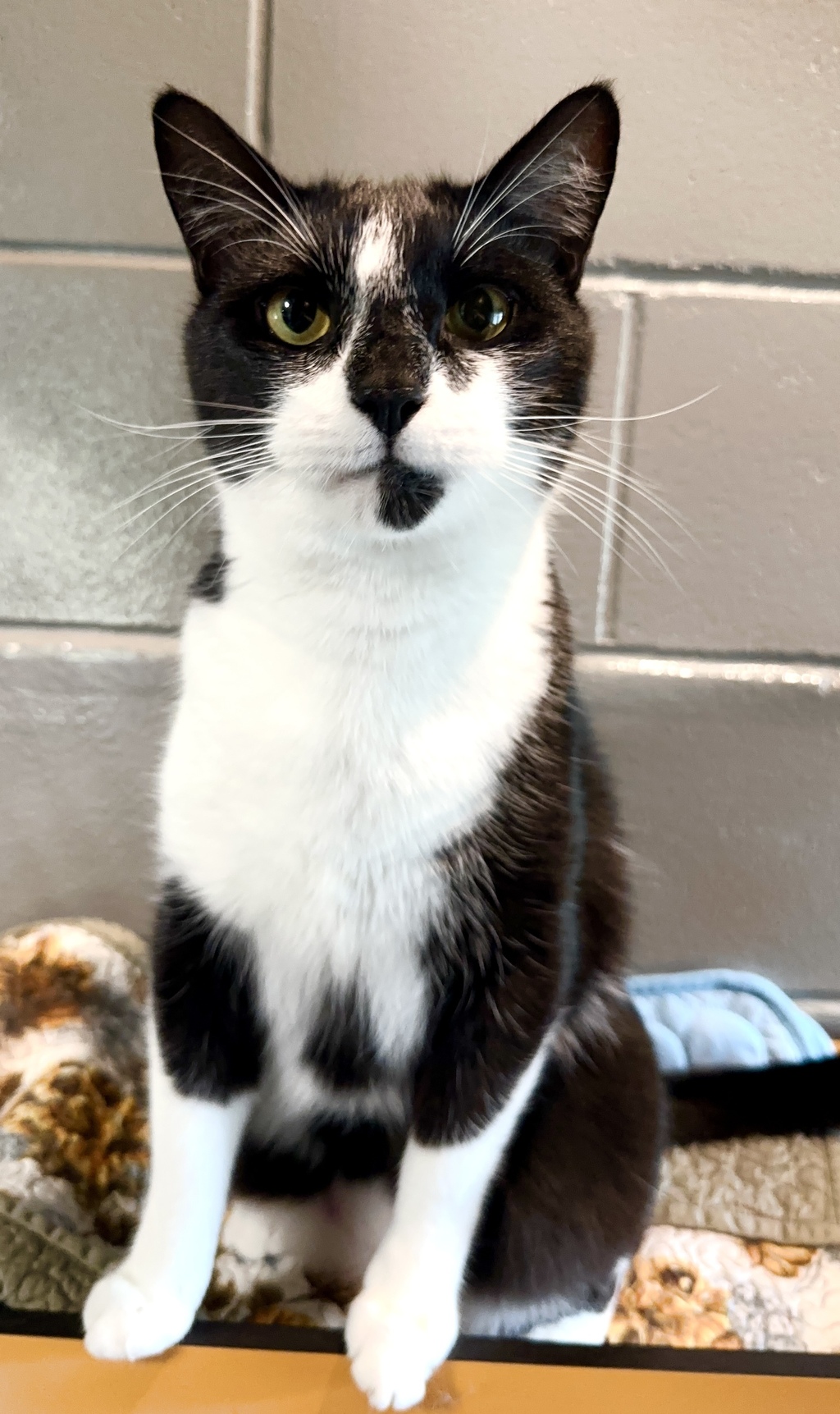 Pepper is our gorgeous tuxedo boy with the sweetest heart. He might be a little shy when you first meet him, but give him a bit of time and he'll be chatting away like an old friend. He really does love a good conversation!