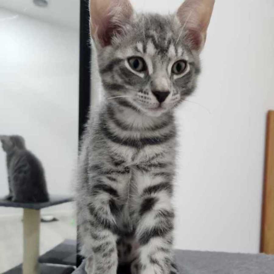 Meet Leo, a delightful grey kitten whose lively spirit is sure to steal your heart! Full of energy and always ready for fun, Leo is the ultimate companion for anyone seeking a playful and loving pet.