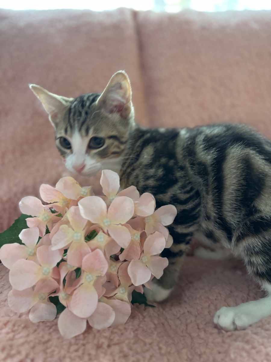 Meet Hill, a delightful little boy who's full of love and mischief. Hill is the mastermind behind all the fun and games with his siblings, ensuring that no one snoozes when there's playtime to be had! If you’re seeking a cat who brings an abundance of joy and a touch of cheekiness to your home, Hill is your purr-fect match.