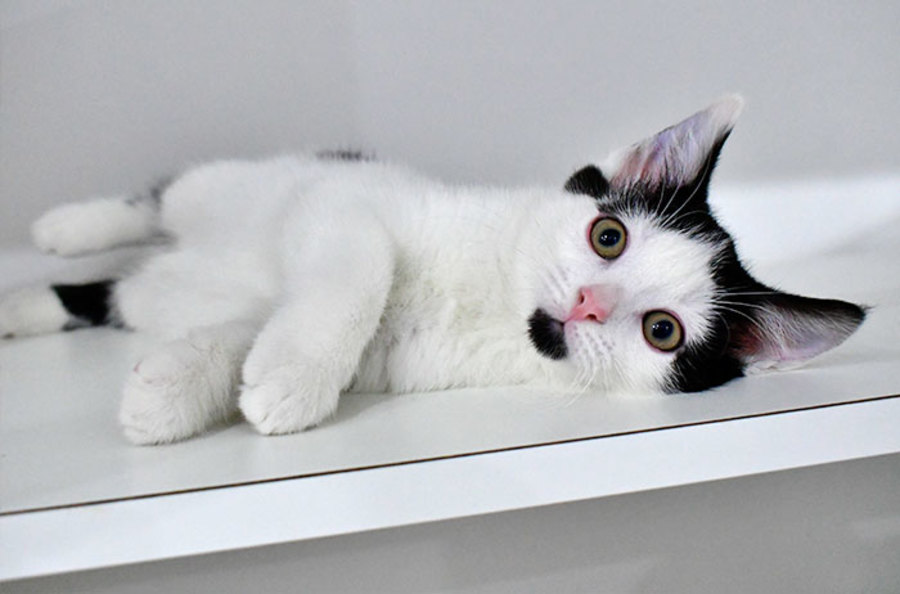 Hutton is not just a pretty face - this little sweetheart is playful, with endless curiosity that gets him to saunter around his condo in anticipation for attention! While he may seem relaxed in his photos, underneath that cute exterior is a kitty who adores his toys just as much as he adores climbing up on shoulders for some prime cuddle time.