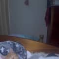 Nora is softening into her solo era. She sleeps at the end of your bed like a polite, purring foot warmer—but don’t be surprised if she slowly scoots her way closer until she’s basically your weighted blanket. Subtle. Strategic. Adorable.