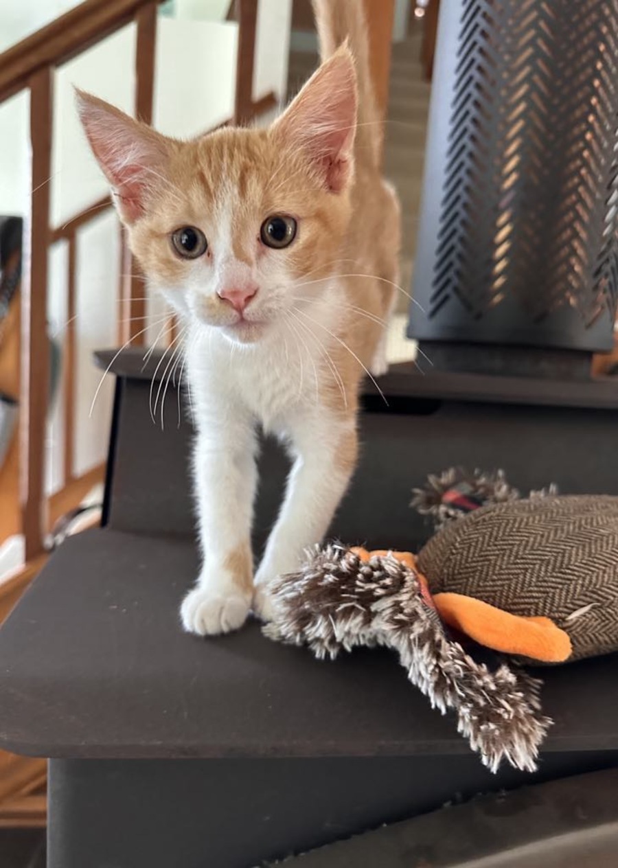 Being an indoor-only kitten, Fudge offers the perfect feline companionship in the warmth and safety of your home, bringing along a loyal heart and a playful spirit. If you're seeking a sensitive and sweet kitten to share your life with, Fudge is eager to become part of your world.