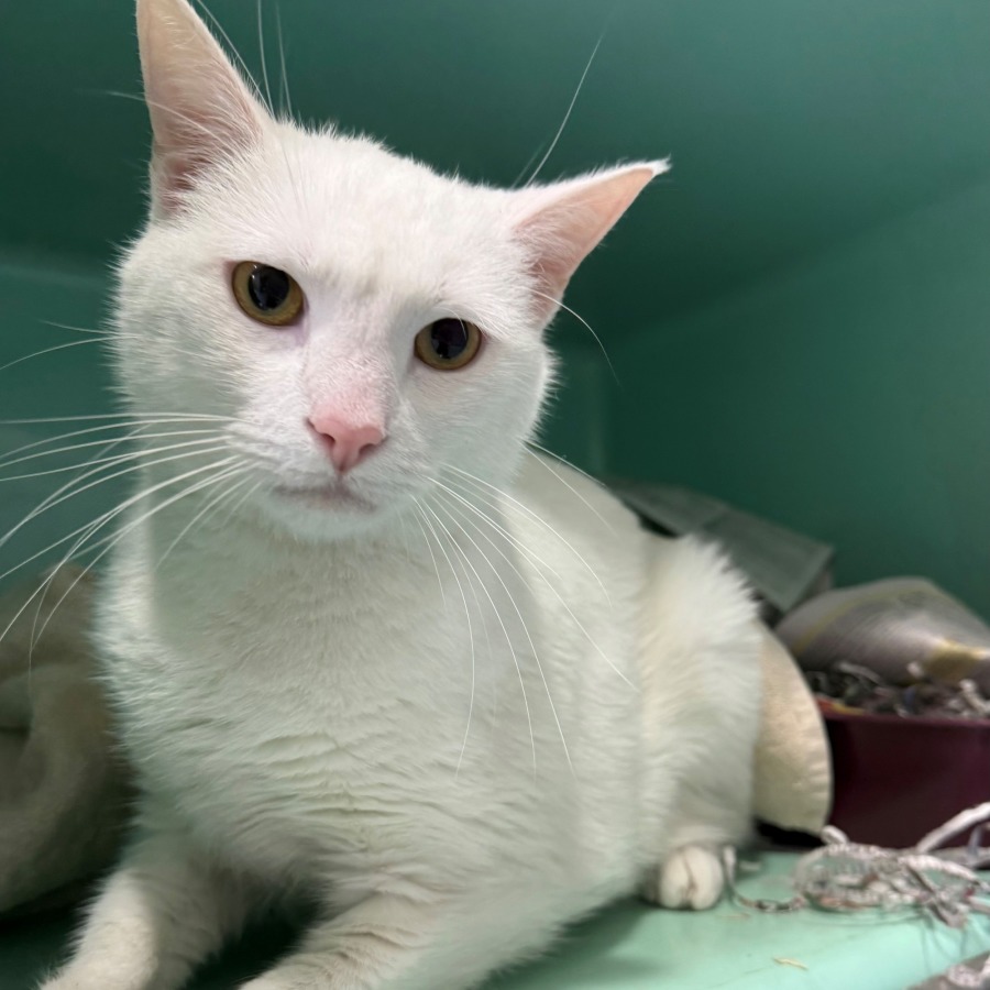 Charlie is a 3-year, 10-month-old white male cat with such a sweet heart. Charlie may be a little shy at first, but with a little patience, he’ll be your loyal companion. He’s looking for a calm, loving home where he can grow, feel comfortable, and come out of his shell. 🐾💖