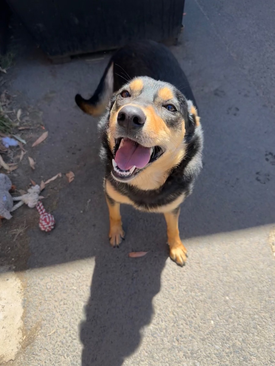 Ruby is happiest when she's on the move. She has a high energy level and requires daily exercise to keep her fulfilled and entertained. Whether it's a long walk, a game of fetch, or an exciting run around the park, Ruby embraces every opportunity to stretch her legs and soothe her lively spirit. While she may not have had extensive exposure to other dogs initially, Ruby handles new canine encounters with grace when given a slow introduction, quickly settling in and showing her playful side once she's comfortable.