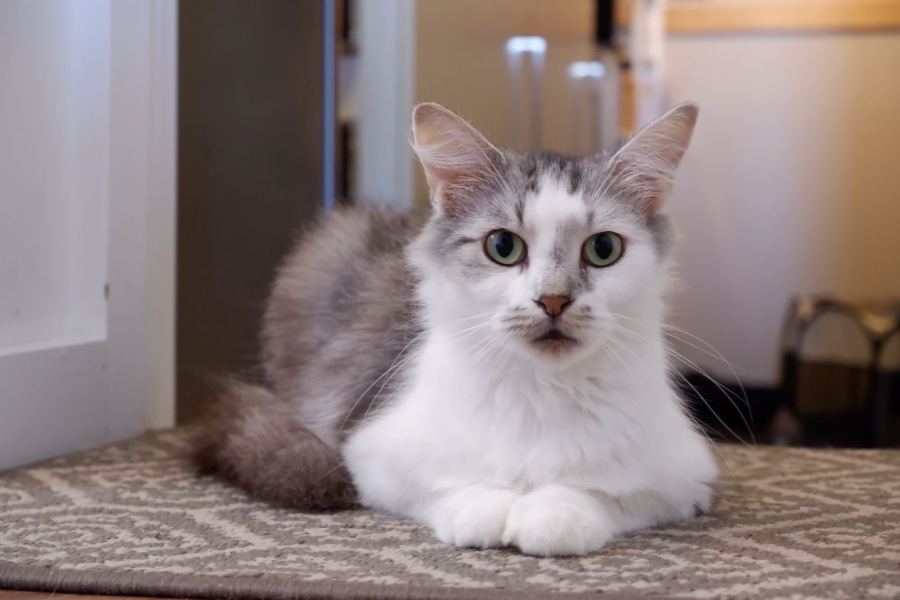 Meet Ari – a beautiful white and grey tabby with medium-length, soft fur that’s as soothing as her presence. This sweet girl has had a tough start in life, but her resilience and loving nature shine through. Ari prefers a calm and quiet environment, making her an ideal companion for a single female looking for a low-maintenance, independent pet. She enjoys her alone time basking in the sun from a high perch but will also share moments of affection and cuddles once she trusts you.