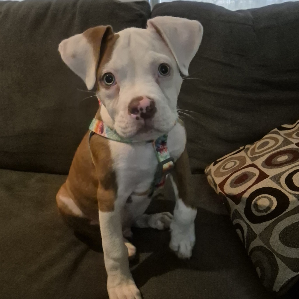 Gage knows the word "No" and sits on command. He is starting to learn "lay down" and walking nicely on a lead. He is very smart and curious. We have introduced him to cats but would need to take it slow as he is very excited to see them. We are working on toilet training and Gage is getting better each day. Gage would benefit from a strong leader that has time to train him.