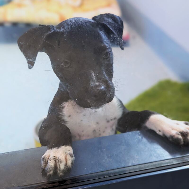 Hi there, my name is Sox! I'm a 2-month-old male American Staffordshire Terrier puppy. You know, I'm just a little guy trying to learn about the world. I'd love to be your pupil, learning new things every day. That's why I need someone who works average hours, so we can have plenty of time for play and training. I'm a social butterfly when it comes to other dogs - I just love making new friends. However, I don't have any experience with other animals in the house, but with a little patience and positive introductions, I'm sure I'll be just fine. I'm a moderate kinda guy, not too crazy, not too chilled, just right. I have no known issues with kiddos, so a family with children would be just fine by me. So, how about it? Could you be the one to show me all the love and lessons the world has to offer? I promise to reward you with endless puppy kisses and a lifetime of loyalty.