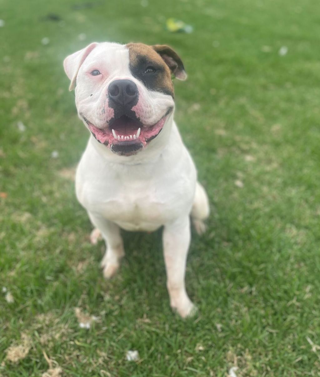 Meet GoJo, a lovable 10-month-old American Bulldog with a heart as big as his frame. Despite his tough exterior, GoJo is all about affection and warmth once you get to know him. With his impressive size and gentle nature, he would thrive in a family setting, especially with older children who can handle his energy and strength.