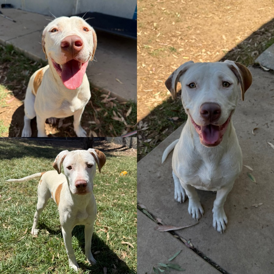 A 7-month-old Staffordshire Terrier mix with a sweet personality and lots of love to give! Opal is a playful girl who loves pats and is very food-driven, making her eager to learn and great for training. She’s good with dogs and might also get along with cats, and she could be okay with young kids as long as there’s supervision.