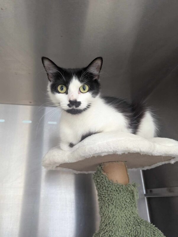 Mittens can be a shy girl who will need time to settle in and adjust to the sounds and smells of her new home. She will need a litter tray, toys, scratching post and a comfy bed to call her own. She will need a quiet home with no children under the age of 15. When she has settled in, you're in for the loudest purring girl ever. She loves a good chin scratch and when she decides your lap is the spot she settles down to go to sleep. She will also need to be the only cat in the home as she will need to have all your love and attention. If you feel this pretty girl could be your furever fur baby, please ask a staff member today to meet her!!