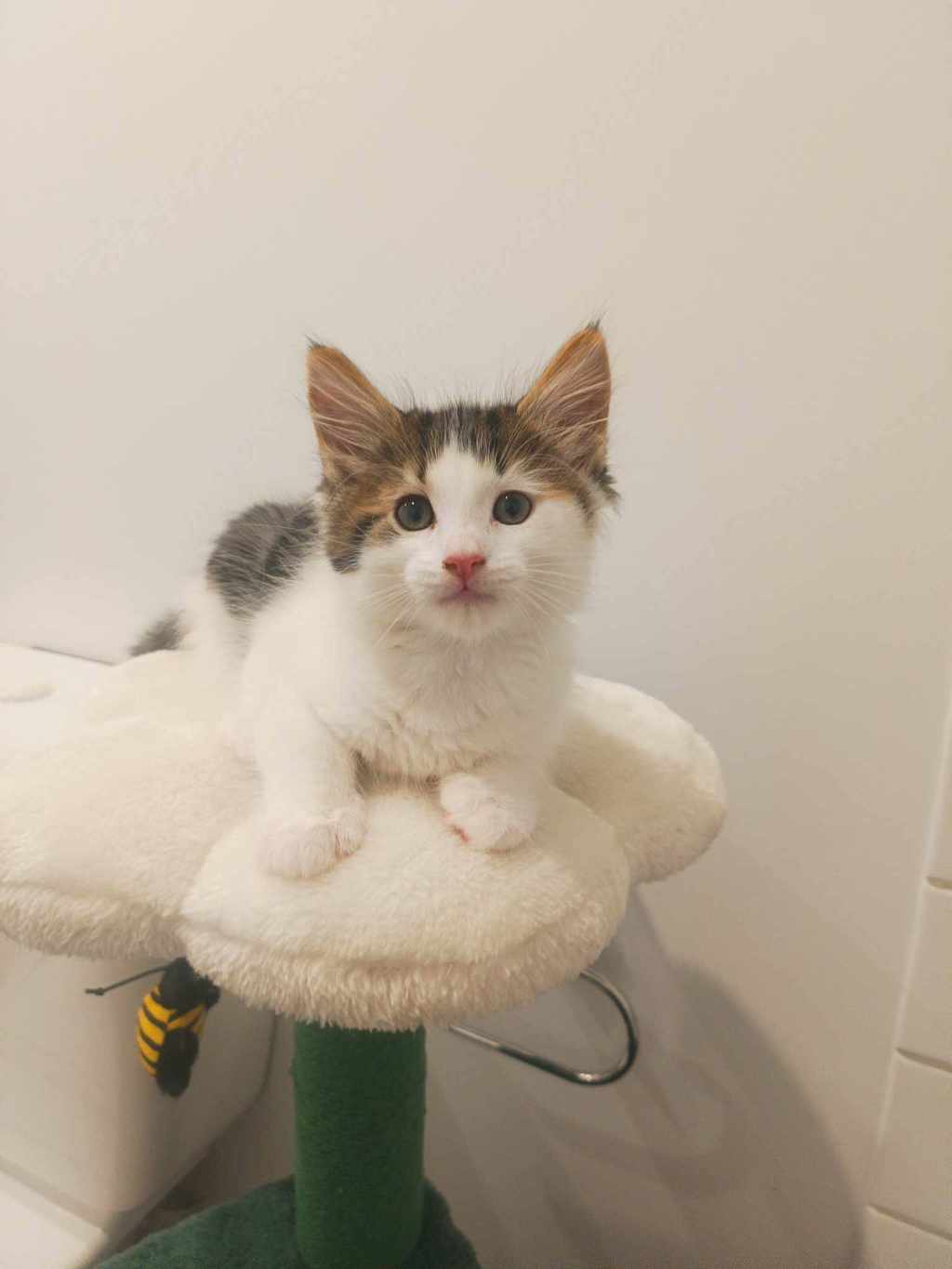 Dash is the perfect combination of playful and confident. This little adventurer is always on the go, constantly exploring new heights on cat towers, zooming through tunnels, and turning even the simplest toys into hours of entertainment. Dash's curiosity knows no bounds, and they have a way of making even the quietest corner of the house feel like an exciting playground. Social and friendly, Dash gets along famously with other cats and loves to share in the fun with their feline companions. Whether it's a game of chase, climbing to the highest perch, or simply lounging together after a long play session, Dash is sure to become the heart of your home. If you're looking for a kitten who will bring plenty of energy and joy to your life, Dash is ready to race into your heart!