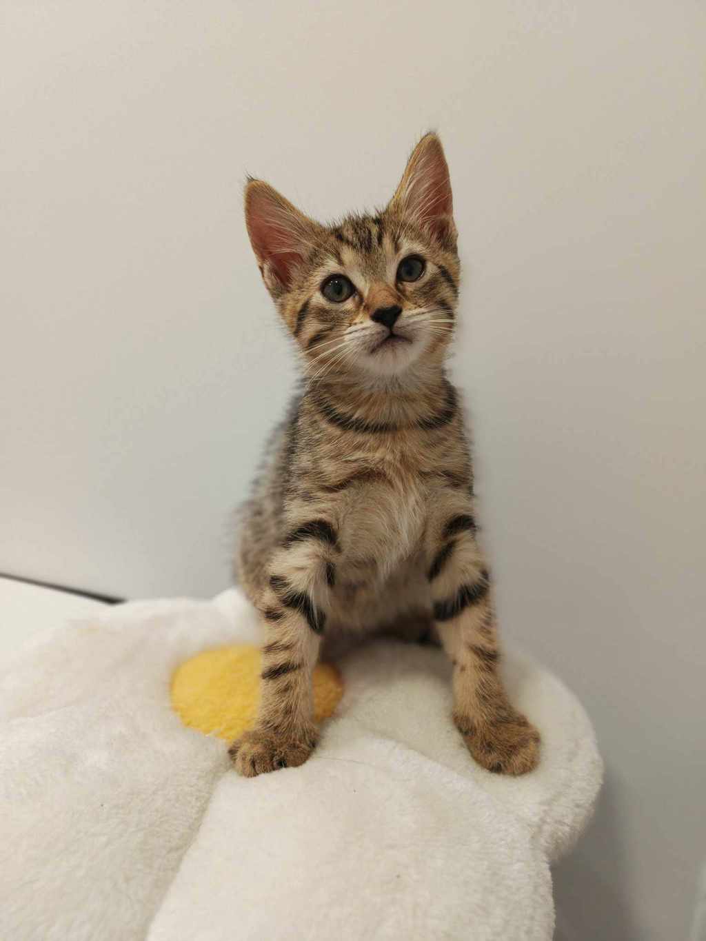 Elfie is the adventurous spirit you've been waiting for! This playful kitten has boundless energy and a curious nature that leads them to explore every corner of the house. From climbing tall cat towers to zooming through tunnels, Elfie is always in motion, ready to leap into whatever fun comes their way. Their playful personality makes them a hit with other cats, as they're always looking for a new friend to share the excitement with. Elfie's social nature ensures that they will bond well with any furry companion and make an excellent addition to a multi-cat household. But Elfie isn't all action-when it's time to relax, this kitten enjoys curling up with their fellow cats or basking in the warmth of your company. With their confidence, energy, and affectionate nature, Elfie is sure to bring a burst of fun and love into your home!