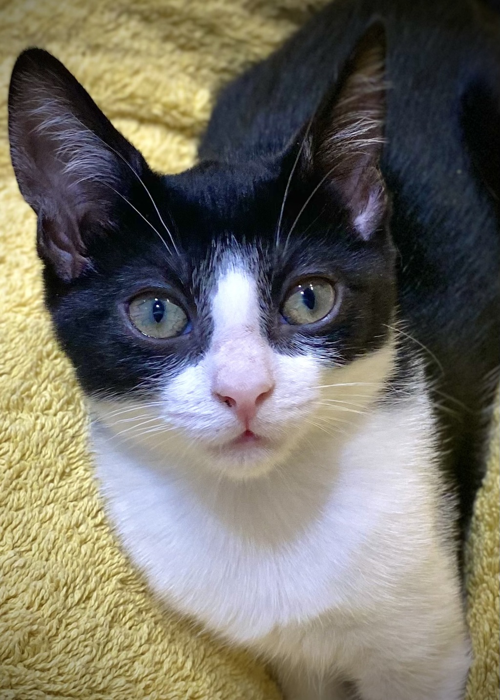 Hi. My name is Nyla and I arrived in the shelter with my two other sisters. We are each seeking loving human guardians, who can spend time with us each day and be our furr-ever protectors. Myself and my sisters are already purring and giving little kisses. I'm the one with a beautiful, black and white coat. The colour of my eyes will be a surprise for you as they haven't reached their true shade as yet.