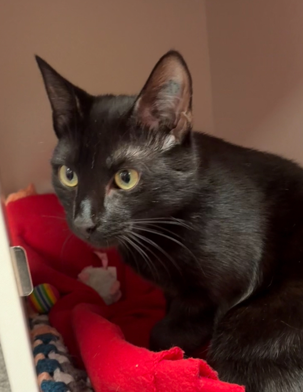 At only 10 months old, Shadow is a super cool guy who's great with kids and other cats, and may even do well with a well behaved dog given the right introduction. He came from a home where he was very well loved and looked after, he came into our care though no fault of his own. If you'd like to meet this cool cheeky little guy come down to the cattery any day between 11:30-3:30.
