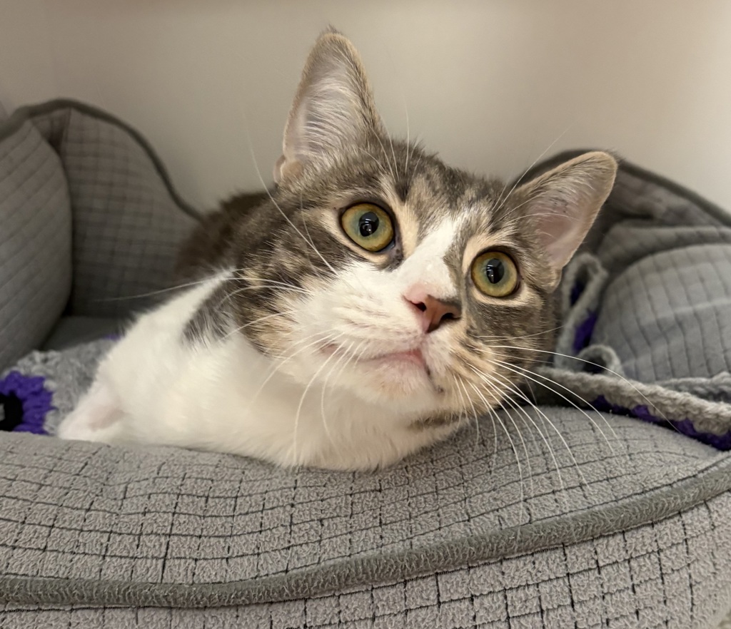 He's a happy guy who's only a year old so still full of energy and happy for a play and a cuddle with his favorite people. He's not fussed about the other cats here in the cattery, so would be happy in a home with or without other furry friends, and he may even be fine with a polite dog given the right introduction.