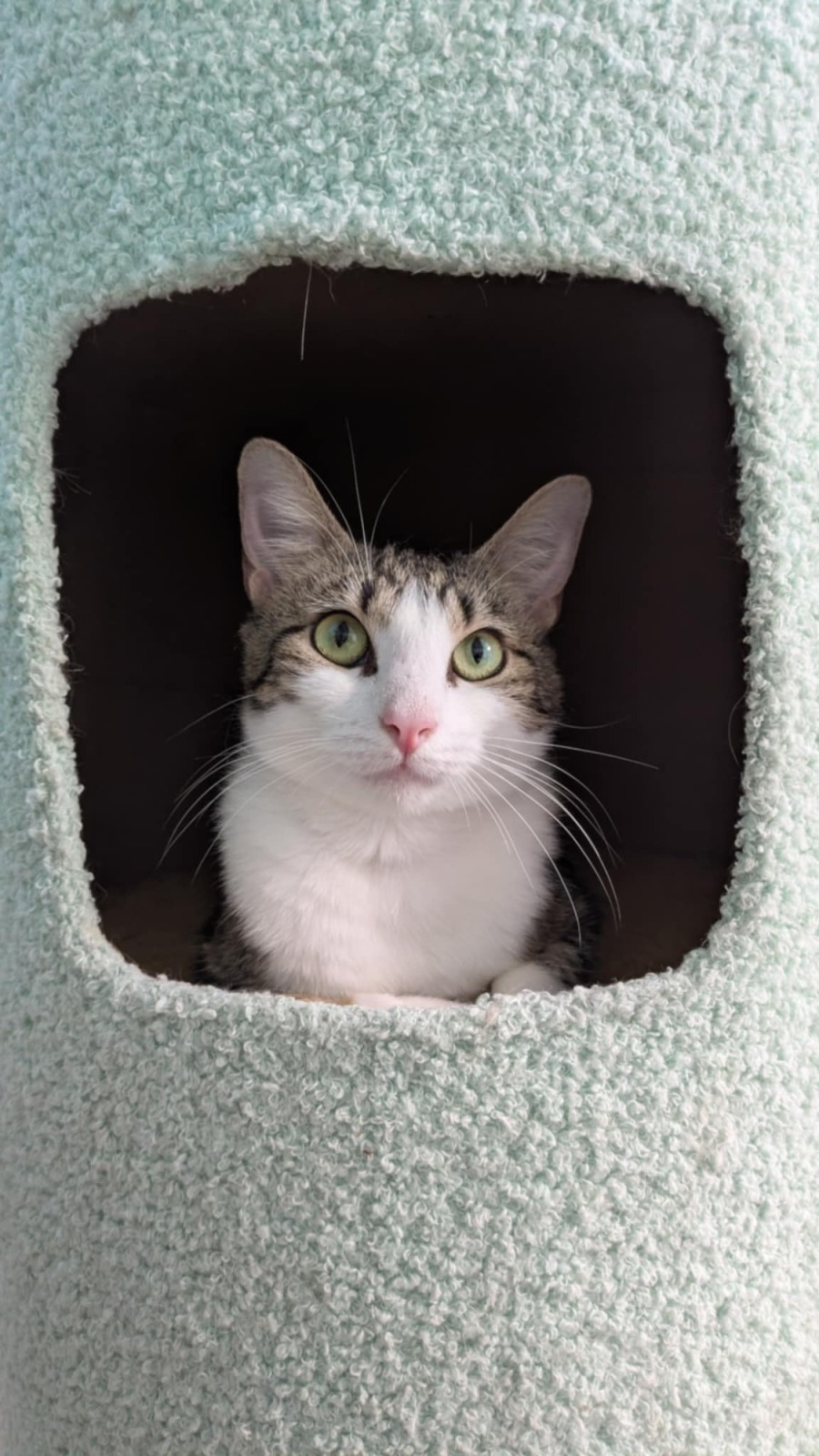 This sweet girl adores being doted on with pats and cuddles from her human friends, she's a gentle girl at heart and enjoys the simple things in life like a full belly, a cat tree to chill on, and a family to love and be loved by.
