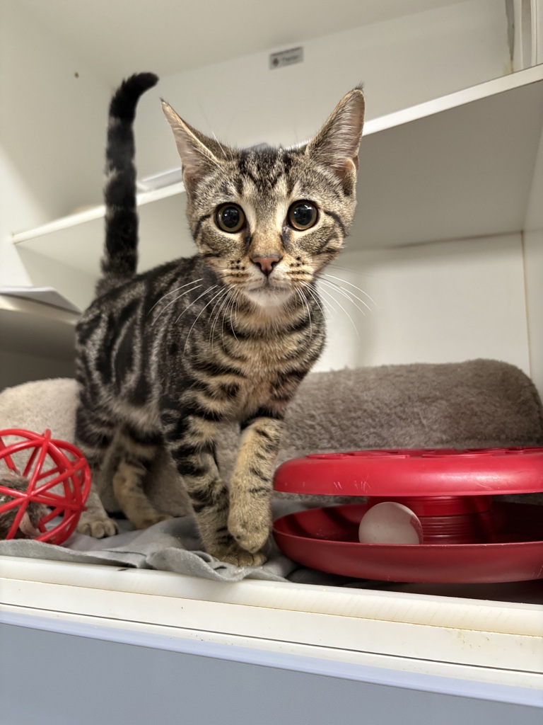 Hey there, I'm Marlin. I'm a friendly and affectionate kitten who would suit most homes! My playful paws are always ready to pounce on anything that moves. I love playing with wand toys and mysterious shadows on the wall! When I'm finished playing, I love nothing more than finding a warm lap to curl up in.