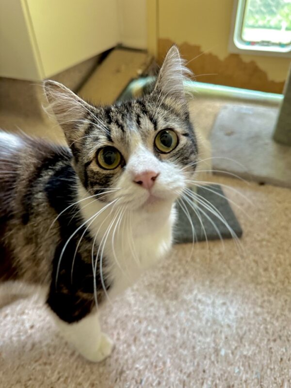 I’m not the loud, outgoing type, but I’ll show you how much I care through soft purrs and cozy moments together. I’ll need some time to settle in and a calm, secure space where I can feel safe and come out of my shell. Once I feel comfortable, I’m all about affection and food—seriously, I love to eat and cuddle! A tasty treat or a good chin scratch will go a long way in winning me over.
