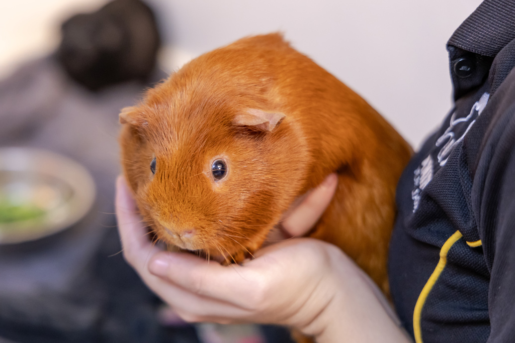 Tim Tam loves the company of other guinea pigs and would be happiest if he could stay with his buddy Oreo. However, if you already have a guinea pig looking for a friend, Tim Tam is open to making new connections with a proper introduction. He enjoys munching on fresh veggies, snuggling in soft bedding, and lounging around like the relaxed little king he is.