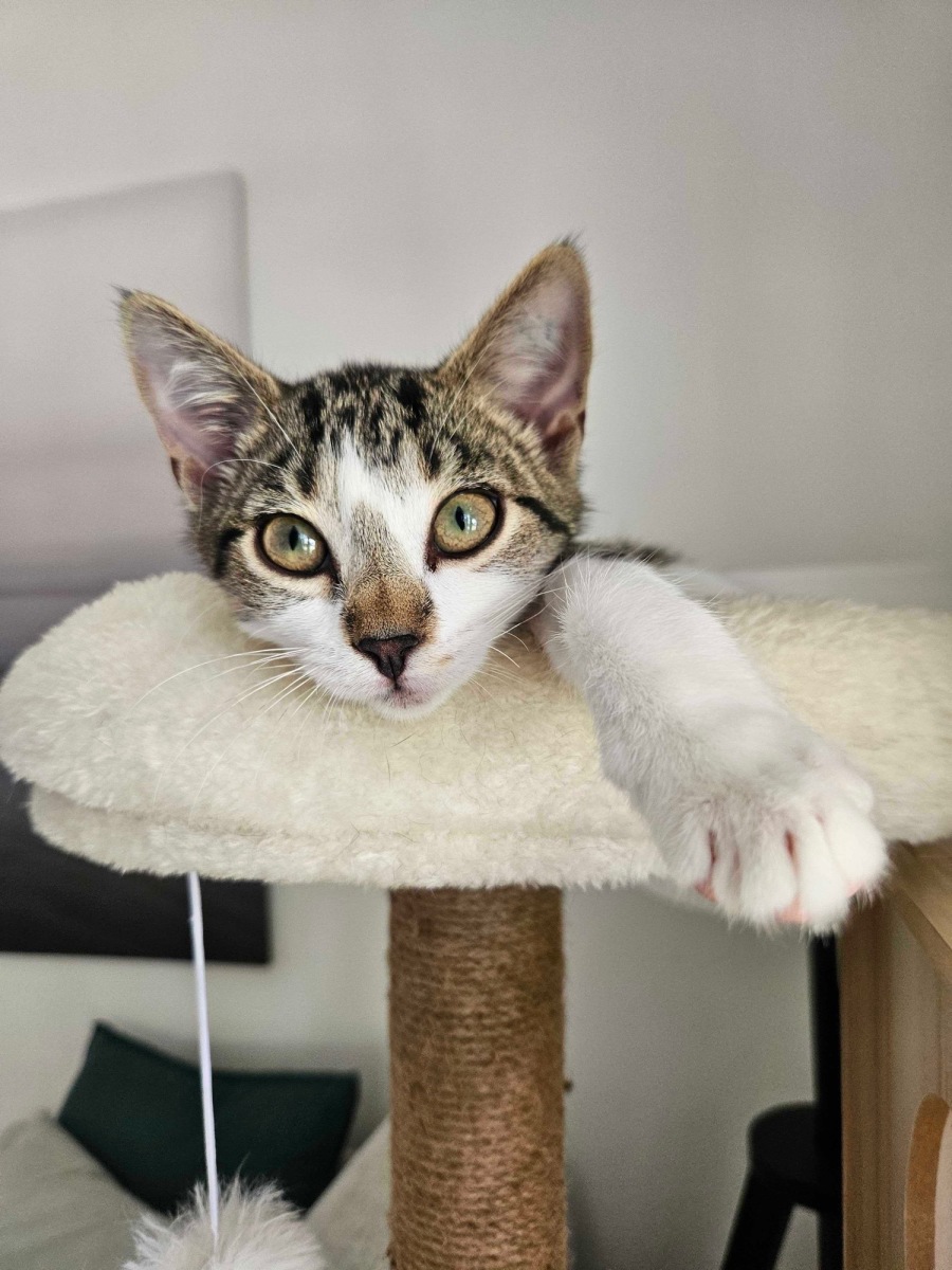 Be aware that I'm obsessed with food, so you might have to feed me away from any other pets. My foster parents once tried to put me in the cat tree to let my brother eat in peace, and I beat them back to the kitchen...