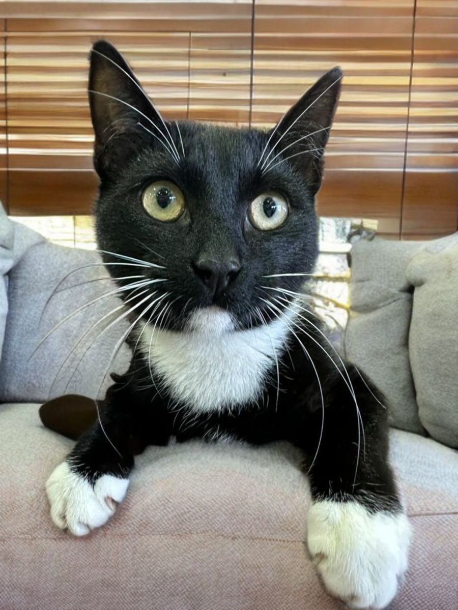 Reggie is the classic black-and-white heart-stealer with just the right mix of confidence, charm, and mischief. An older kitten with a big personality, Reggie has grown up in a lively household with three teenagers and a clowder of cats – and it shows. He’s bold, social, and always ready for playtime!