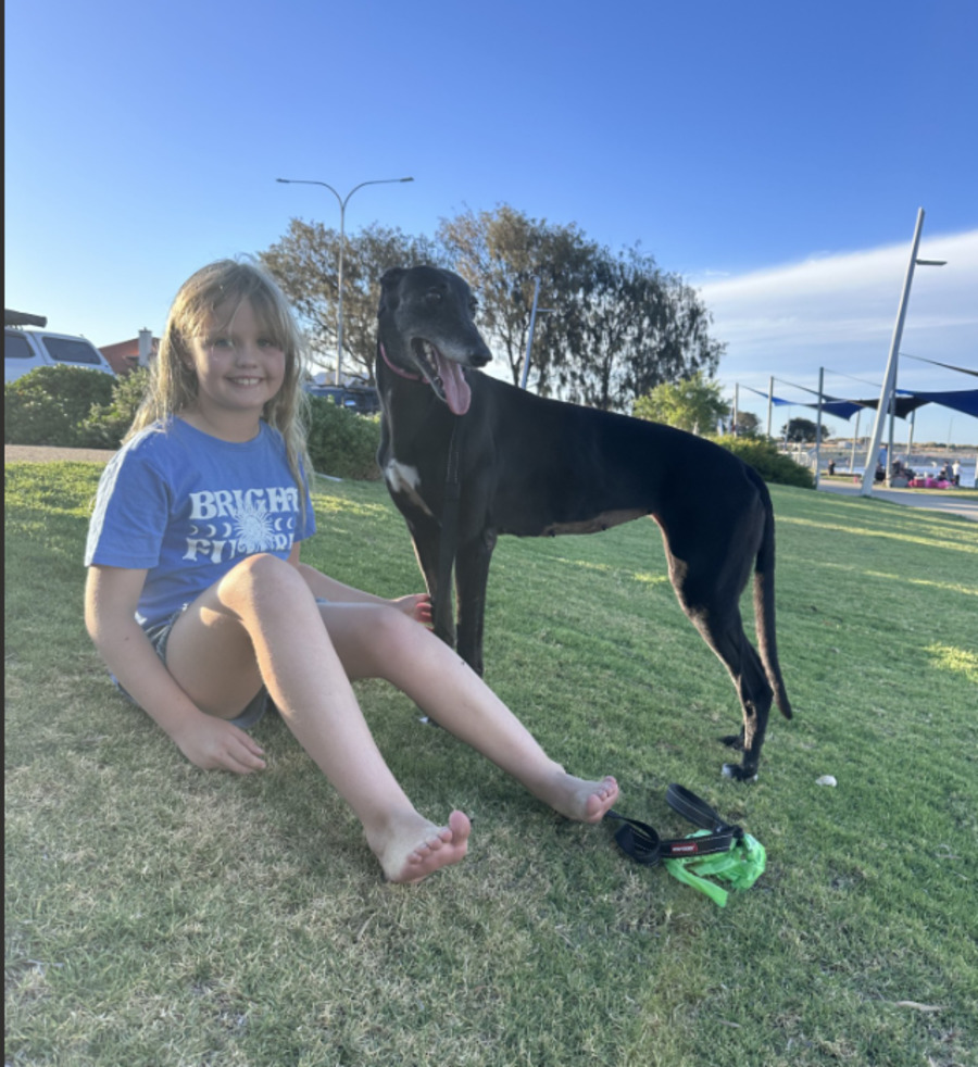 Violet turned 8 years old last October, and is seeking a loving home to live out the her twilight years. Violet is great with kids and big male dogs and loves the beach, cafes and anywhere she can get attention.