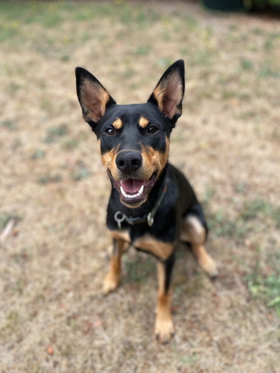 A typical young kelpie, he is an energetic boy. He loves going out on long walks and could make an excellent walking or running buddy. He also enjoys just pottering about the yard with his people and would love to be your farm or gardening sidekick.