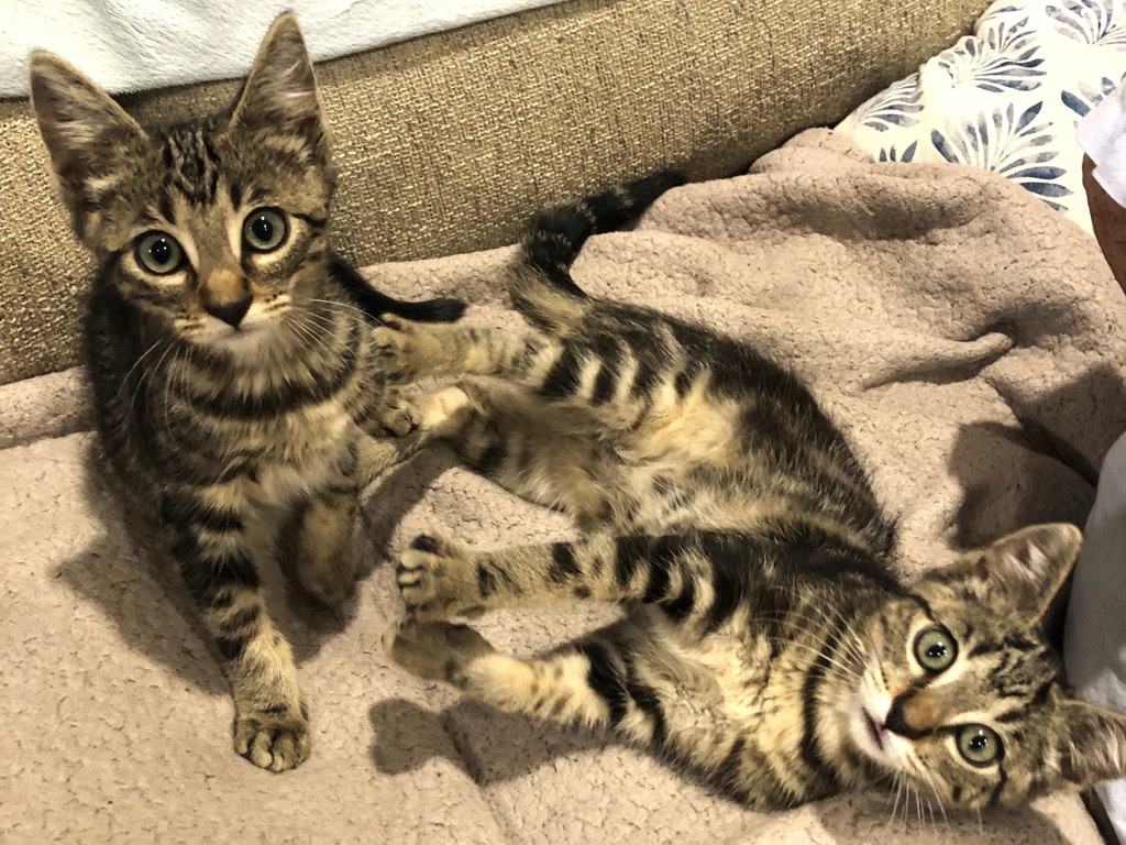These two are about nine weeks old now and are totally inseparable, so we would like them to go together to the same home.