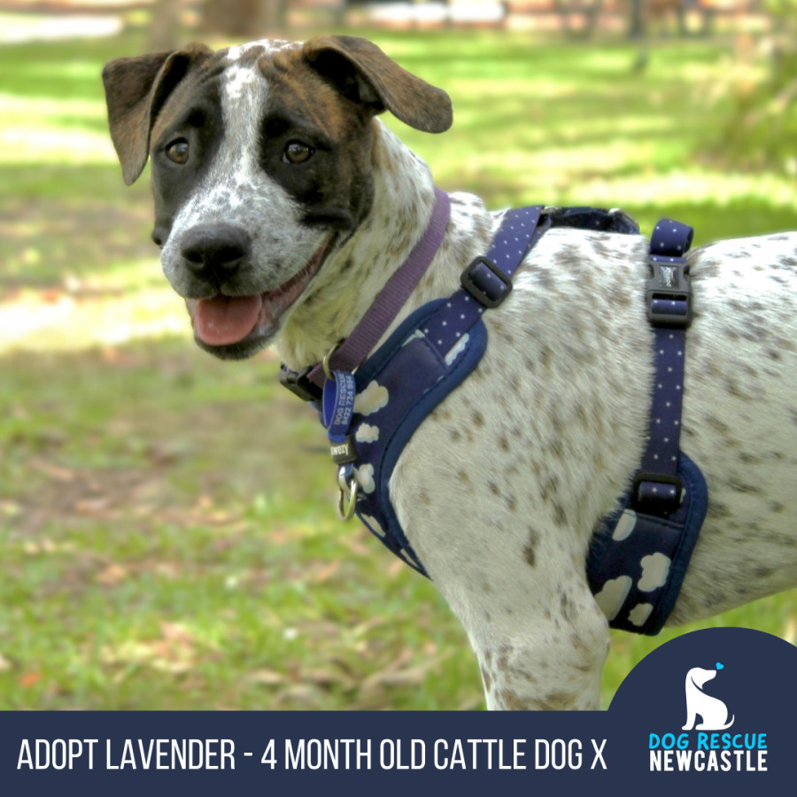 Meet Lavender, a gentle and contemplative pup who takes her time to assess her surroundings and make decisions. She is an affectionate and intelligent 4 month old Cattle Dog, Great Dane x, with a zest for life.