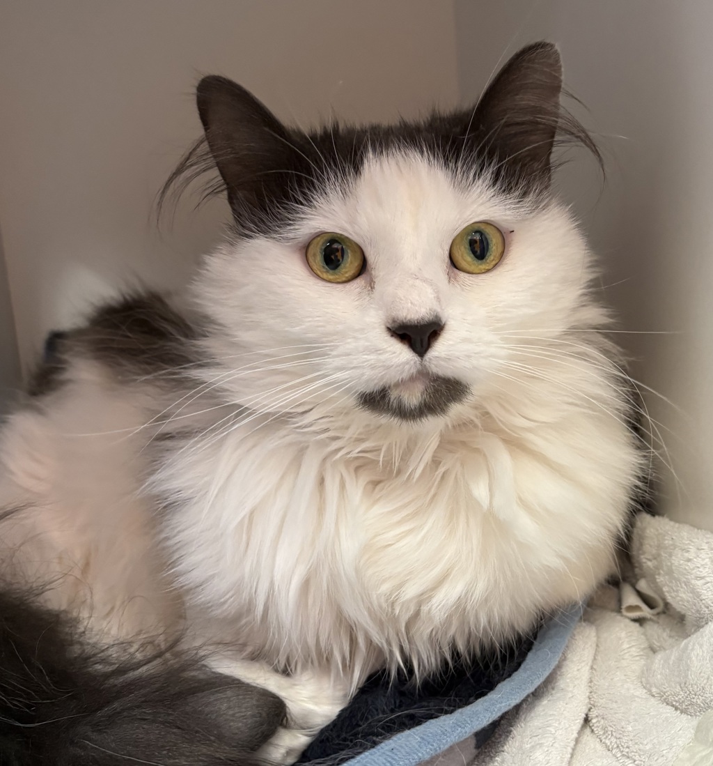 Meet Blitz, a sweet 5-year-old female cat with a playful spirit and a loving nature. Blitz enjoys the company of other cats and gets along well in a calm, harmonious home. She's affectionate and loves spending time with her humans, though she would thrive best in a mature family or one with older children who can respect her space and quiet demeanor. Due to her delicate white nose, Blitz would be happiest as an indoor kitty, where she's safe and cozy. If you're looking for a loving companion who's easygoing and great with other cats, Blitz might be the perfect fit for your family!