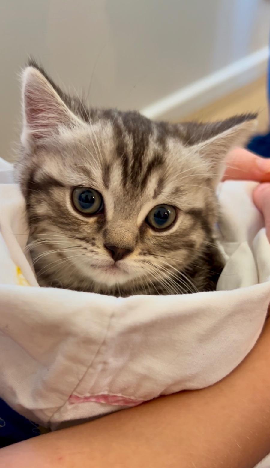 Meet Pinky, an adorable silver tabby kitten, blessed with a coat of exquisite two-tone smoke colours. She is the embodiment of cheer and curiosity, ready to bring her playful spirit and boundless energy to a loving new family.
