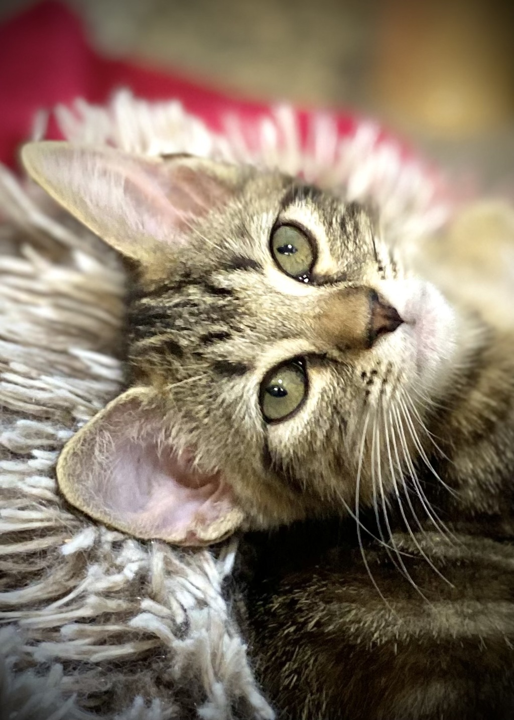 Meet Penny, an affectionate and playful kitten who is sure to steal your heart! Penny loves nothing more than cuddling up close and receiving all the attention she can get. She thrives on being near her people and will happily spend hours basking in your company. Though she's a sweet, gentle soul, she can be a bit demanding when she wants more love and affection, but how can you resist her charm?