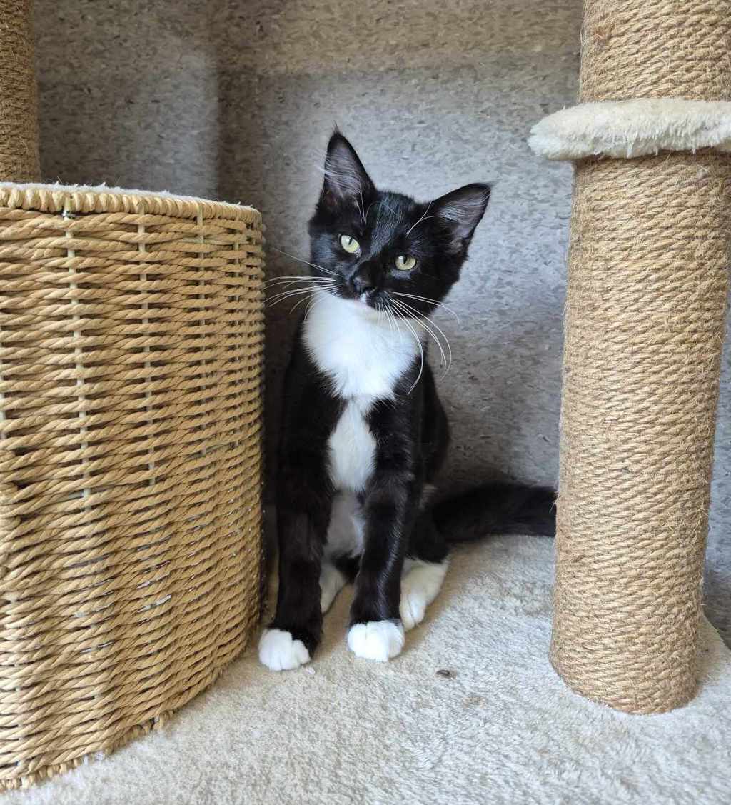 Specials is a beautiful black and white kitten with a calm and gentle nature, ready to find her forever home. Though she's a bit reserved at first, her potential to blossom into a playful snuggle bug shines through. With a little patience and love, Specials will fill your home with her quiet charm and sweet affection.