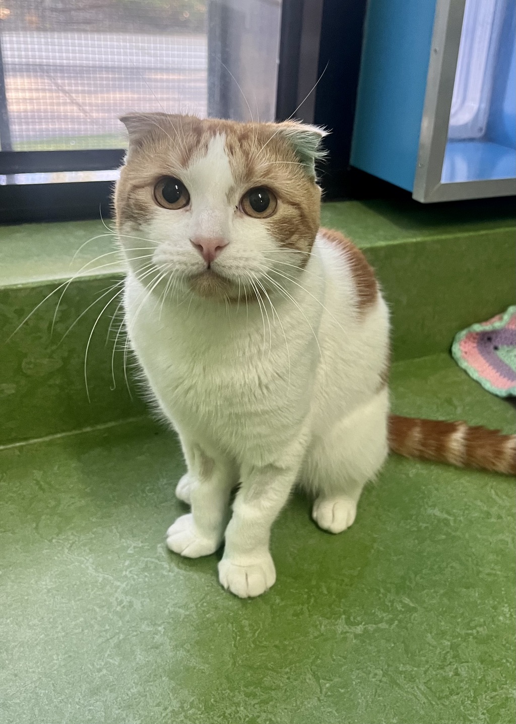 Potato Salad is looking for a calm and loving family who can provide a safe indoor home to protect his light features from the sun. He'll thrive in an environment where he can relax, explore at his own pace, and start forming bonds with his favorite humans. He might even enjoy the company of another feline friend, especially if you give them a proper "slow-cooked" introduction. He may get along well with calm, cat-savvy children. This little foodie will absolutely feast on enrichment! Think comfy perches to gaze at the world, tunnels to zoom through, and cozy hiding spots where he can curl up and daydream. Keep him mentally stimulated and he'll be one happy, contented kitty.