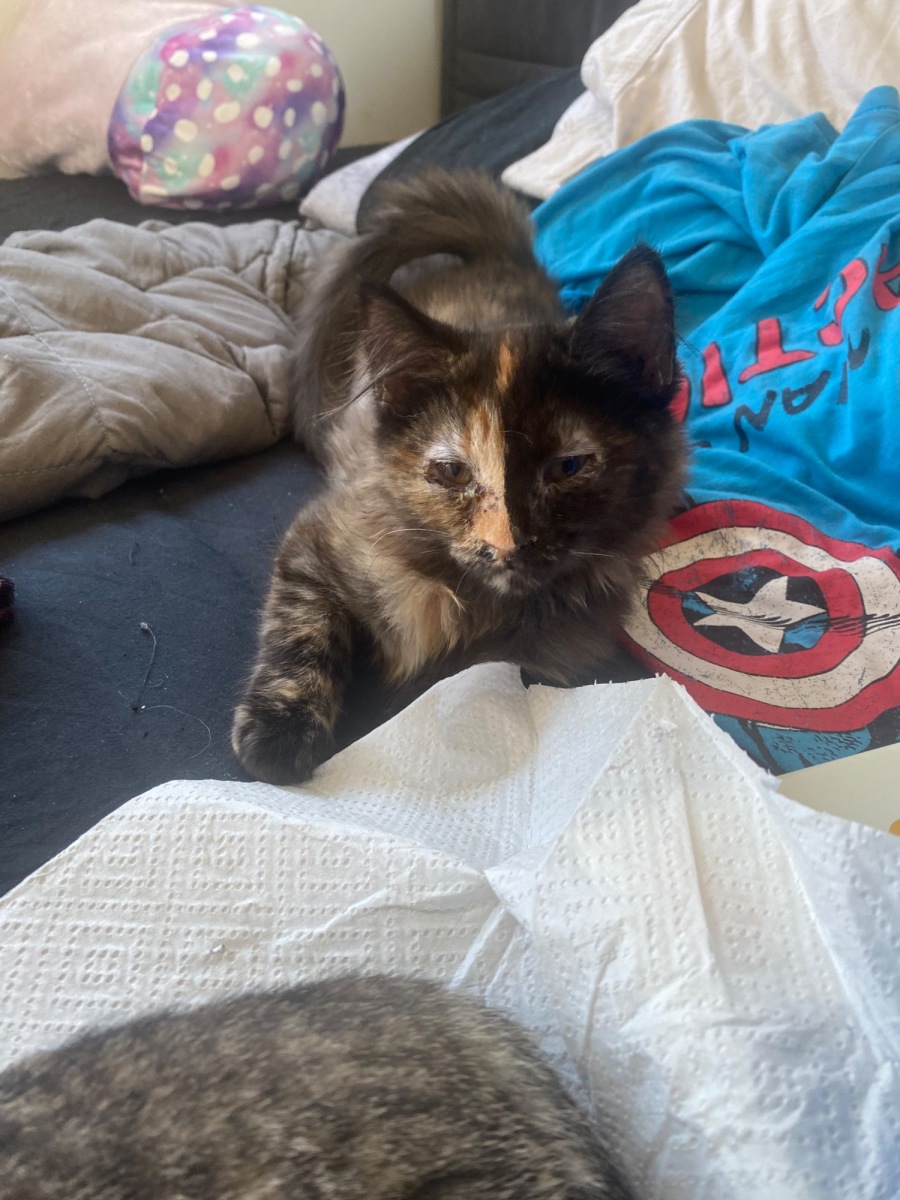 This cute girl was found at a construction site with her siblings at 1 week old, and mum nowhere to be found.
