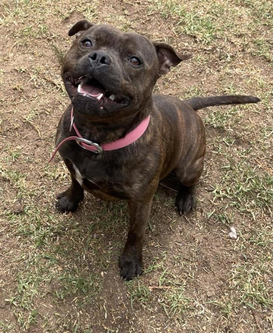 Hugo is an incredibly social dog who thrives on interaction. He loves meeting new people, making friends wherever he goes, and he's equally happy hanging out with his human companions as he is with a pack of his fellow canines. As a true Staffy, he's full of life and always ready for an adventure, turning even an ordinary day into lasting memories filled with wagging tails and laughter.