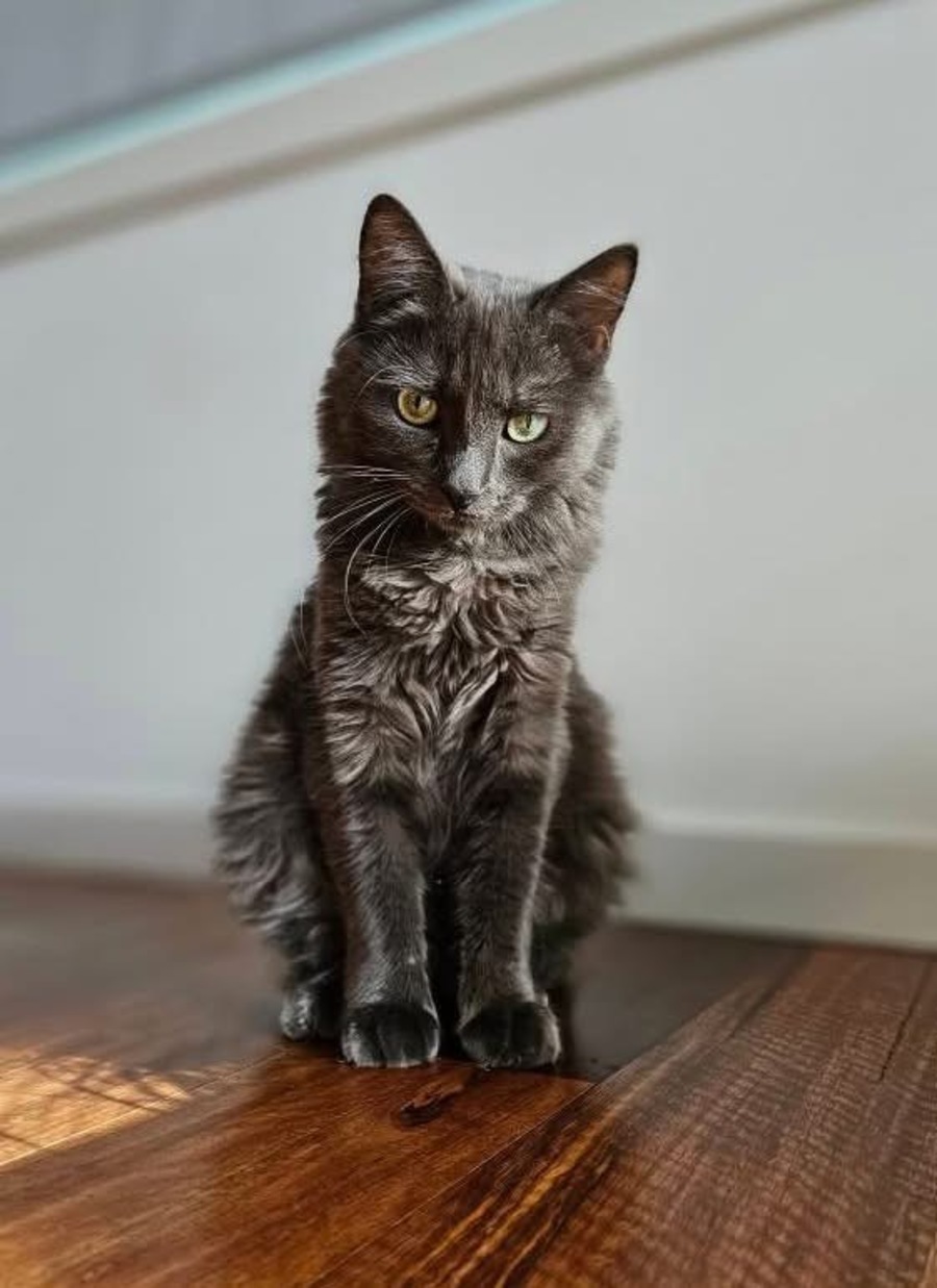 This sweet boy has had a rough start, left at a vet as a tiny kitten 🐱 and has been in our care ever since. He earned his name because when held and cuddled, he gives the BEST bear hugs! It's truly heartwarming ❤️. However, once he's put down, a different side emerges. Bear is understandably scared 😿 and hisses and growls whenever humans approach. We're working hard to help him feel safe, but he needs a very special, experienced owner to continue his journey.