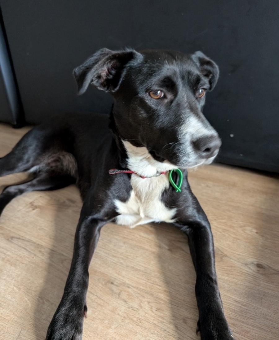 She does lack some basic training but have been able to easily teach her sit and down to stop her slight over exuberance at times. She will is not great at recall and will need ongoing training. She loves a walk and walks well on a lead, a little too excited to start off with and can pull, but she settles down with time. She has been known to be an escape artist so will need a secure yard with high fences.