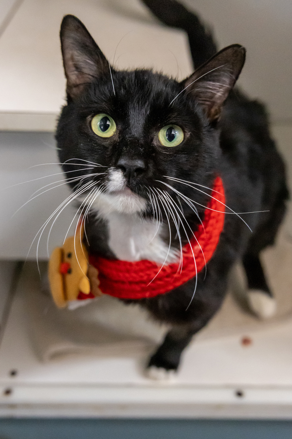 From the moment he arrived at the shelter, Louie showed his affectionate side, perched confidently at the front of his condo, moving forward to greet visitors with head bunts and loud purrs. He's incredibly friendly, always ready to say hello, and will happily soak up pats and cuddles.