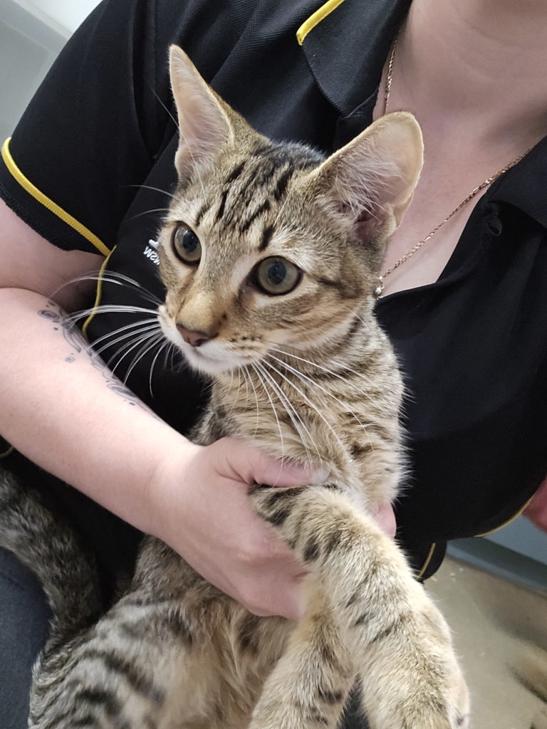 Hey there, I'm Malcolm. I'm a friendly and affectionate kitten who would suit most homes! My playful paws are always ready to pounce on anything that moves. I love playing with wand toys and mysterious shadows on the wall! When I'm finished playing, I love nothing more than finding a warm lap to curl up in.