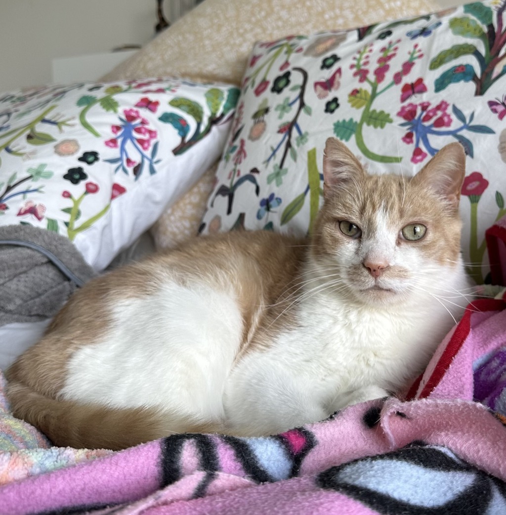 Meet Sandy, the laid-back senior cat who's ready to soak up the sun and enjoy his golden years in peace and comfort.