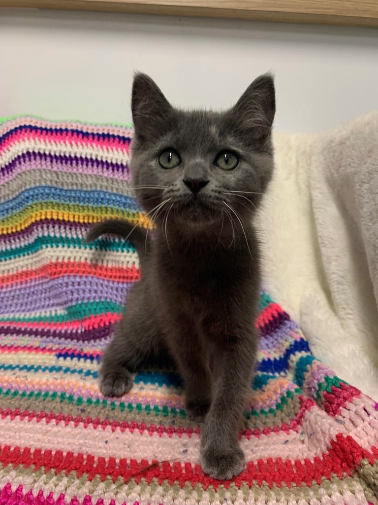 Hi there, I'm Moose! I'm a kitten with a heart full of love and a spirit full of play. I love a good cuddle, and I'll purr my little heart out to show you just how much. My days are filled with chasing balls and batting at shoelaces. But don't let my playful side fool you, I'm a sweetheart through and through. I'll greet you with a friendly meow and a nuzzle against your hand. I promise to be the best companion, always ready for a cuddle or a game. I'm not just a kitten, I'm Moose, and I'm ready to make your life that much sweeter. Why should you adopt me? Because life with me is bound to be full of fun, love, and lots of purrs.