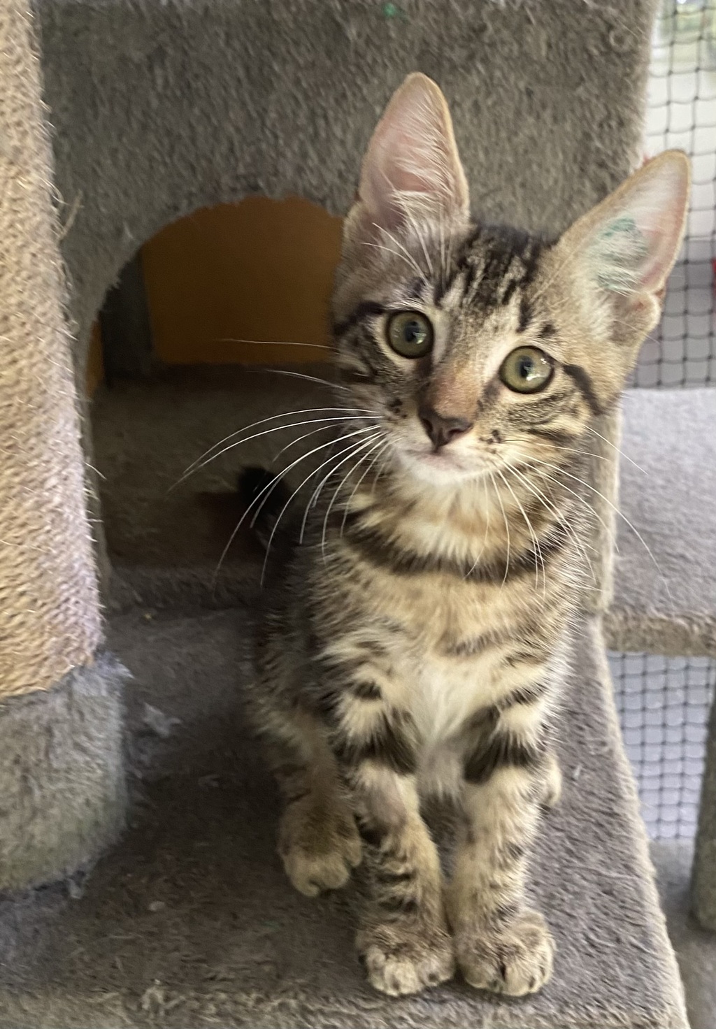 I was born in foster care with my 4 littermates and I have just reached the size that I could have my vetwork done. While spending 10 weeks in foster, I had the run of the house and made the most of it. I am energetic and adventurous and very curious about my surroundings. I also had a great time playfighting with my brothers and sister, but because I was the biggest I tend to win the battles. I love to climb cat towers and when I get tired, I am a very affectionate cat with people and will jump up on the couch to lie with them. I was raised with a small dog so they don't scare me. I think I am the best all-round kitten for your family so please come and meet me.